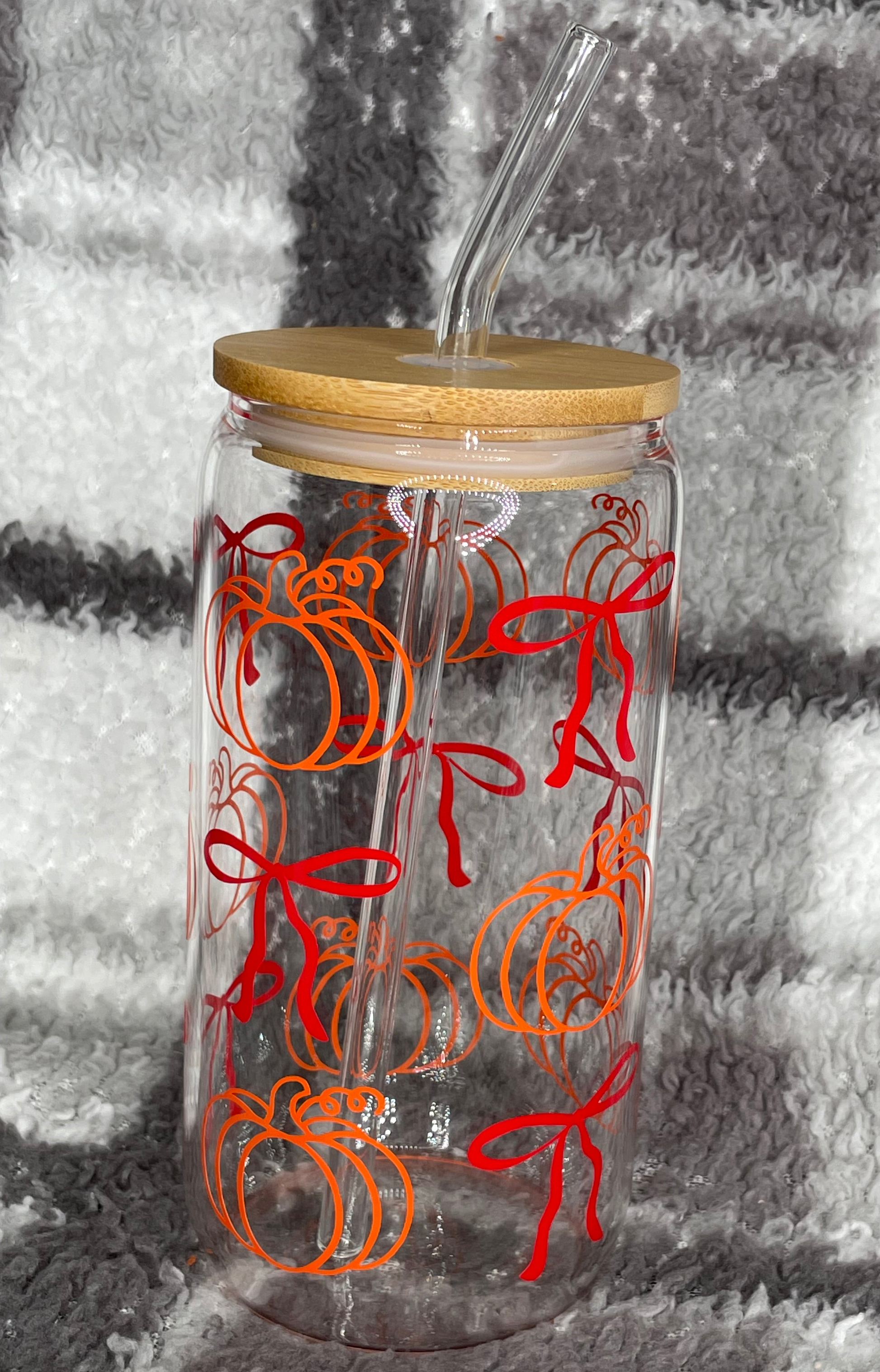 Our beautiful pumpkin print cup is the perfect 480ml reusable glass can to enjoy your iced matcha, coffee or iced tea and makes the perfect gift no matter the occasion or a great treat for yourself. Each cup comes with a lid and glass straw.