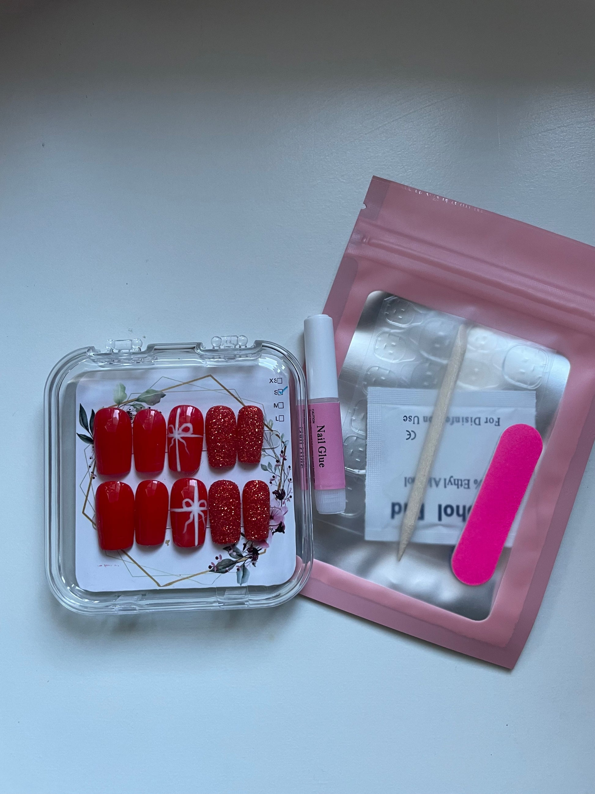 🎀❤️say hello to your new favourite nails! These stunning red press-on nails are prefect mix of bold and playful. Featuring sparkling red glitter, a delicate ribbon and a charming bow accent, they’re all about making a statement.